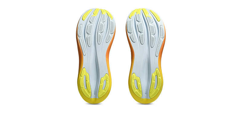 A középtalp FF BLAST™ PLUS párnázással és PureGEL™ technológiával készült. Ezek az elemek könnyű és puha párnázottságot biztosítanak, valóban olyan érzést nyújt, mintha felhőkön futnál.