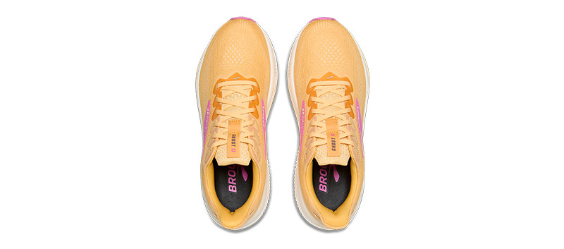 A GHOST 17 modellben a BROOKS tovább növelte a párnázottságot. A hátső részen egy, elöl pedig 3 mm anyagvastagságot adott a cipőhöz a DNA LOFT v3 nitrogén befecskendezésével készült középtalpból. Az eredmény egy kiegyensúlyozott, puha és kiváló stabilitású cipő lett. A Ghost 17 egyrészt a normál lábállású futóknak nyújt kiváló, gördülékeny futólépést, de a mérsékelt befelé dőléssel rendelkezőknek is biztos tartást ad plusz keményebb anyagok, vagy egyéb technológia felhasználása nélkül. Egyszerűen egy jól megkomponált talpszerkezet teszi igen széles körben használhatóvá a cipőt. A drop két milliméteres csökkentésével minden futótechnikához használható, de még mindig a sarokra érkezőknek nyújtja a legjobb élményt. A talp precízen elhelyezett bevágásai flexibilissé teszik a cipőt, könnyed gördülést eredményezve. Új a felsőrész, mely prémium puhaságú, kettős jacuard air mesh struktúrált anyagot kapott.