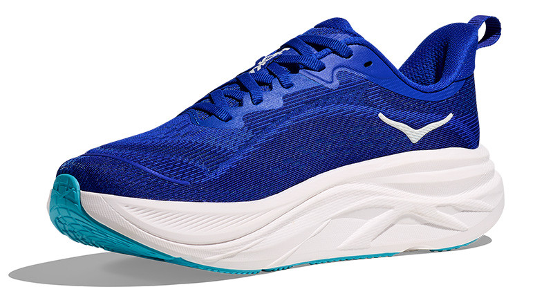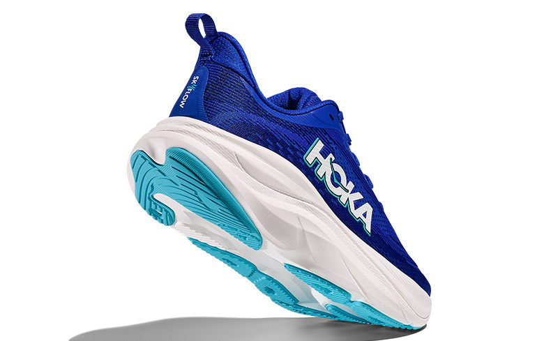 A SKYFLOW a mindennapok edzőcipője egy kicsit másképp, mint ahogy a klasszikus HOKA kilométergyűjtő cipőktől megszokhattuk. A Skyflow arra készült, hogy a napi futóedzéseidet segítse párnázottsággal, dinamikával és stabilitással együtt megtöltve. Nem stabil futócipő, de a sarokrészre koncentráló Active Foot Frame™ a lábat bölcsöbe helyezve ad annyi támogatást a lábnak, amennyit az igényel. Komolyabban befelé dőlő lábra talán nem, de egy kisebb, vagy akár közepes pronáció esetén is kellő támogatást nyújthat plusz keményebb anyaghasználat nélkül is, csupán a kicsit merevebb talpkialakításával. A SCF EVA midsole (szuperkritikus EVA habanyag) nemcsak kellő párnázást, de reszponzív, dinamikus elrugaszkodást is eredményez. Párnázott, de nem pihe-puha, támogatást és sebeséget ad futásaidhoz. Nemcsak hosszabb edzésekre, de gyorsabb futásokra is használhatod. A Skyflow modellel a HOKA azzal tudott továbblépni és kicsit mást nyújtani a márka kínálatában, hogy a Skyward X geometriáját felhasználva egy jól működő, dinamikusabb edzőcipőt hozott létre a nagyon puha modellek mellett. Nemcsak a puhaságra, de a dinamikára és a támogatásra is jobban koncentrálva. Ezzel egy sok lábtípusra alkalmas cipőt hoztak létre.