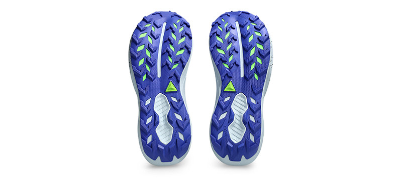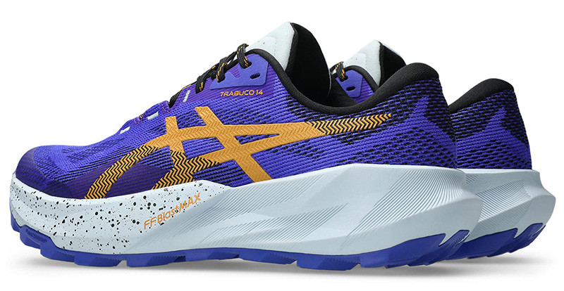 A TRABUCO™ 14 terepcipő magabiztos futást biztosít kiszámíthatatlan terepfutó útvonalakon is. Az ASICSGRIP™ külső talpanyag maximális tapadást nyújt terepfelületeken. Körülbelül 4 grammal könnyebb az előző verziónál, és extra FF BLAST™ MAX párnázással rendelkezik a talp alatt. Ez a középtalp habanyag felhőszerű puhaságot ad talajfogáskor, valamint reszponzív energia-visszaadást az elrugaszkodáskor. A talp első részén a korábbi verziókból ismert és bevált Rock Protection Plate védi a talpat a kövek átnyomódásától.